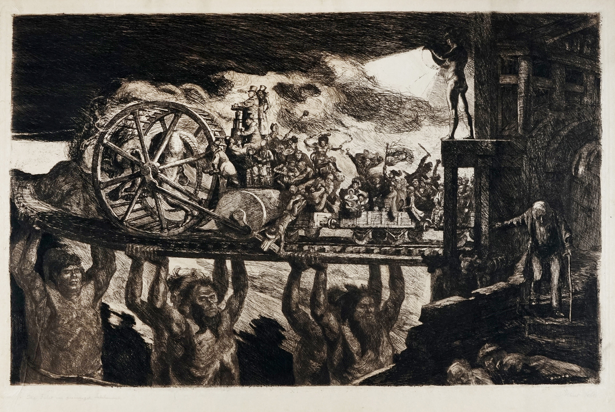Albert Welti, Die Fahrt ins XX. Jahrhundert. 1899. Acquaforte. mm 377x610....