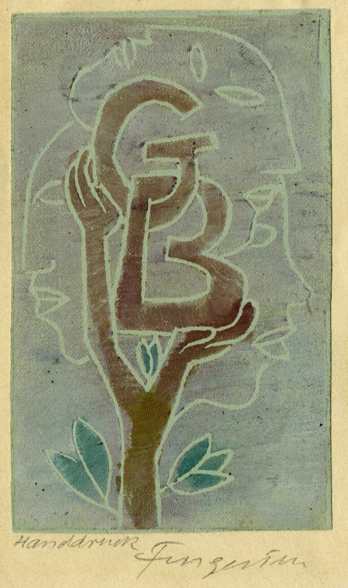 1) Botta. 1942. Linoleografia. mm 83x90. Foglio: mm 95x95. MICHEL FINGESTEN EXLIBRISKUNST, 101. Firma e "Handdruck" a matita sul verso del cartoncino di supporto. 2) G. B. 1942 ca. Linoleografia su carta cerulea. mm 120x74. Foglio: mm 121x75. Firmata a matita in basso a destra, "Handdruck" a matita in basso a sinistra. (2) Entrambe le opere sono parzialmente applicate a cartoncino. Uno dei fogli presenta qualche traccia d'uso ed una minima mancanza al margine superiore.