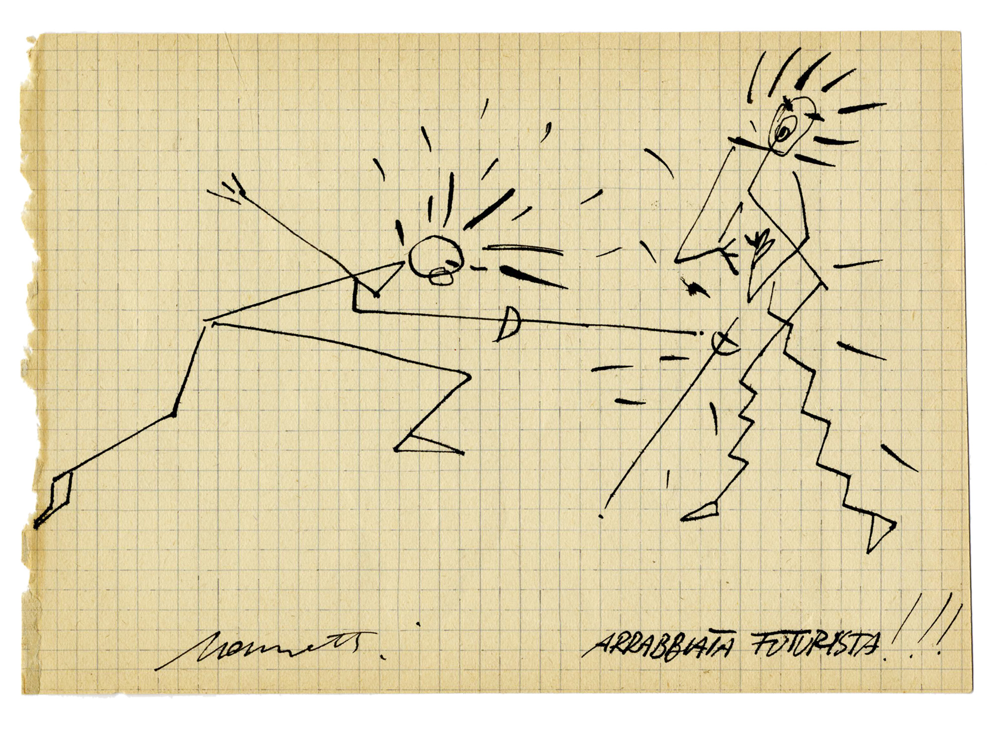 Penna e inchiostro di china su carta. mm 133x187. Firmato in basso a sinistra. Provenienza: Collezione fiorentina futurista; Eredi Nannetti. (1) Leggera ingiallitura da esposizione. Il margine sinistro del foglio è leggermente frastagliato perchè strappato da un taccuino di schizzi e appunti.