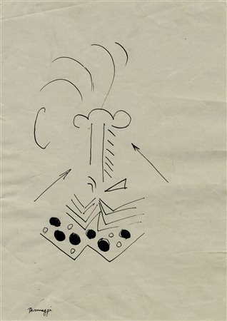 Penna, pennello e inchiostro di china su carta grigia. mm 261x190. Firma in basso a sinistra. Provenienza: Collezione fiorentina futurista. (1) Poche e lievi pieghe altrimenti ottima conservazione.