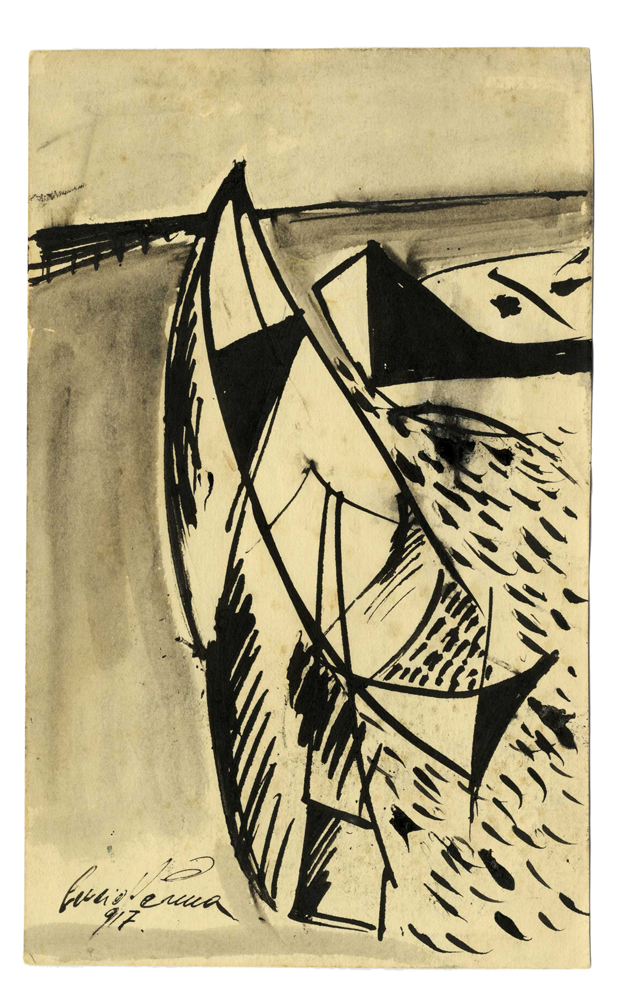 Lucio Venna Landsmann, Barche. 1917. Pennarello, penna e inchiostro di china...