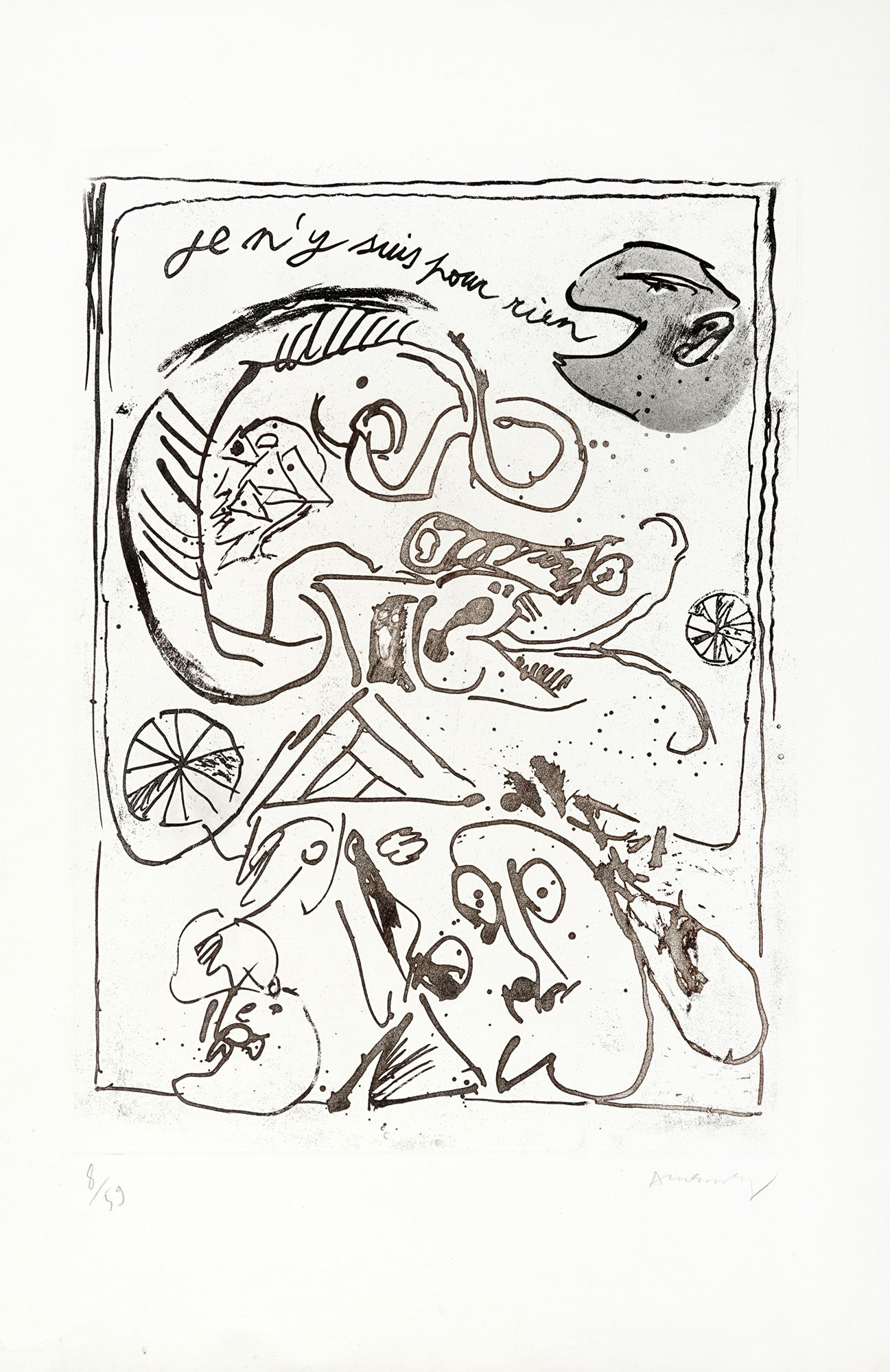 Pierre Alechinsky, Je n'y suis pour rien. 1964. Acquaforte. mm 475x347....
