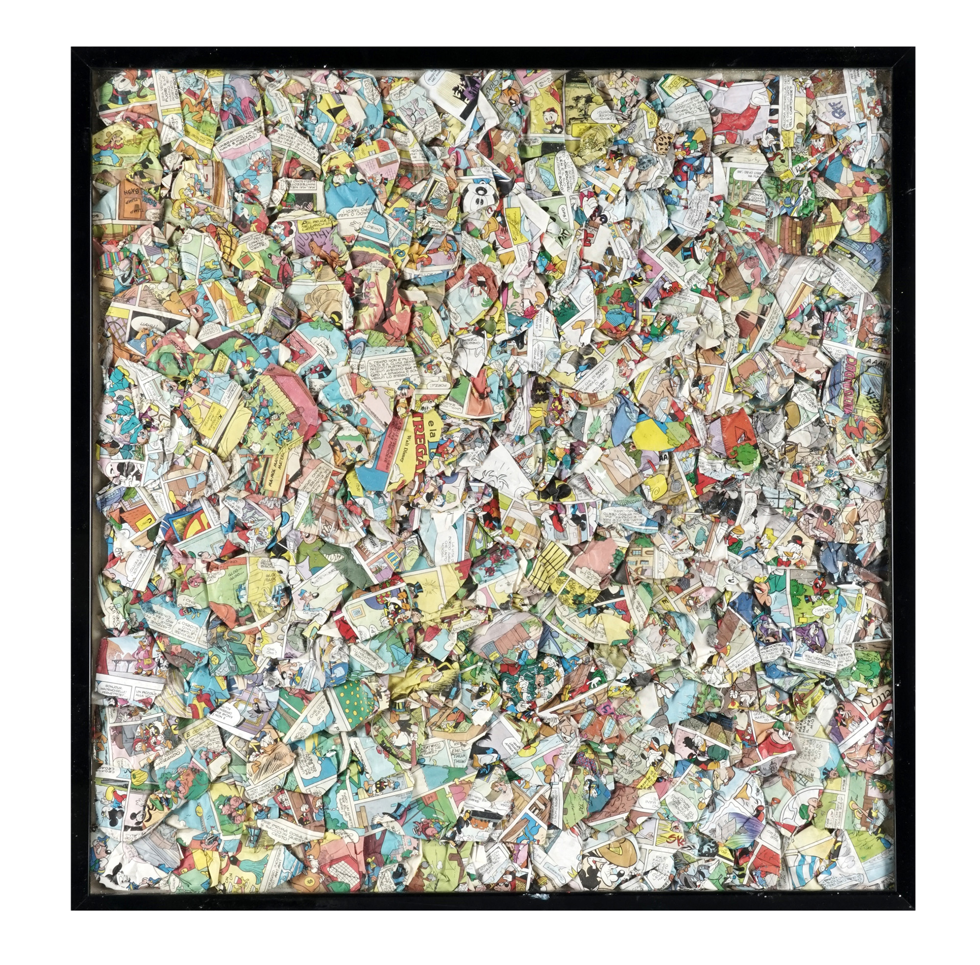 Collage su tela. cm 59x61. Firma, titolo, tecnica e dimensioni a pennarello nero sul verso della tela. Opera accompagnata da autentica su fotografia dello stesso Archivio Carmassi. (1) In cornice nera con vetro: cm 64,5x63. Ottima conservazione.