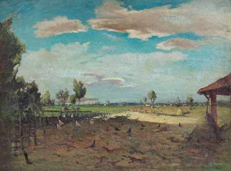 GEMELLI IVO Milano 1897 - Torino 1964Paesaggio campestreolio su cartone cm....