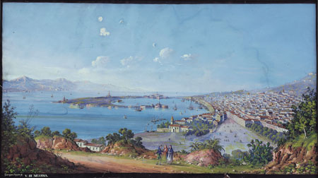 SCOPPA GIUSEPPE GUSTAVO 1856 - ?Veduta di Messinagouache su carta, cm. 51x89,...