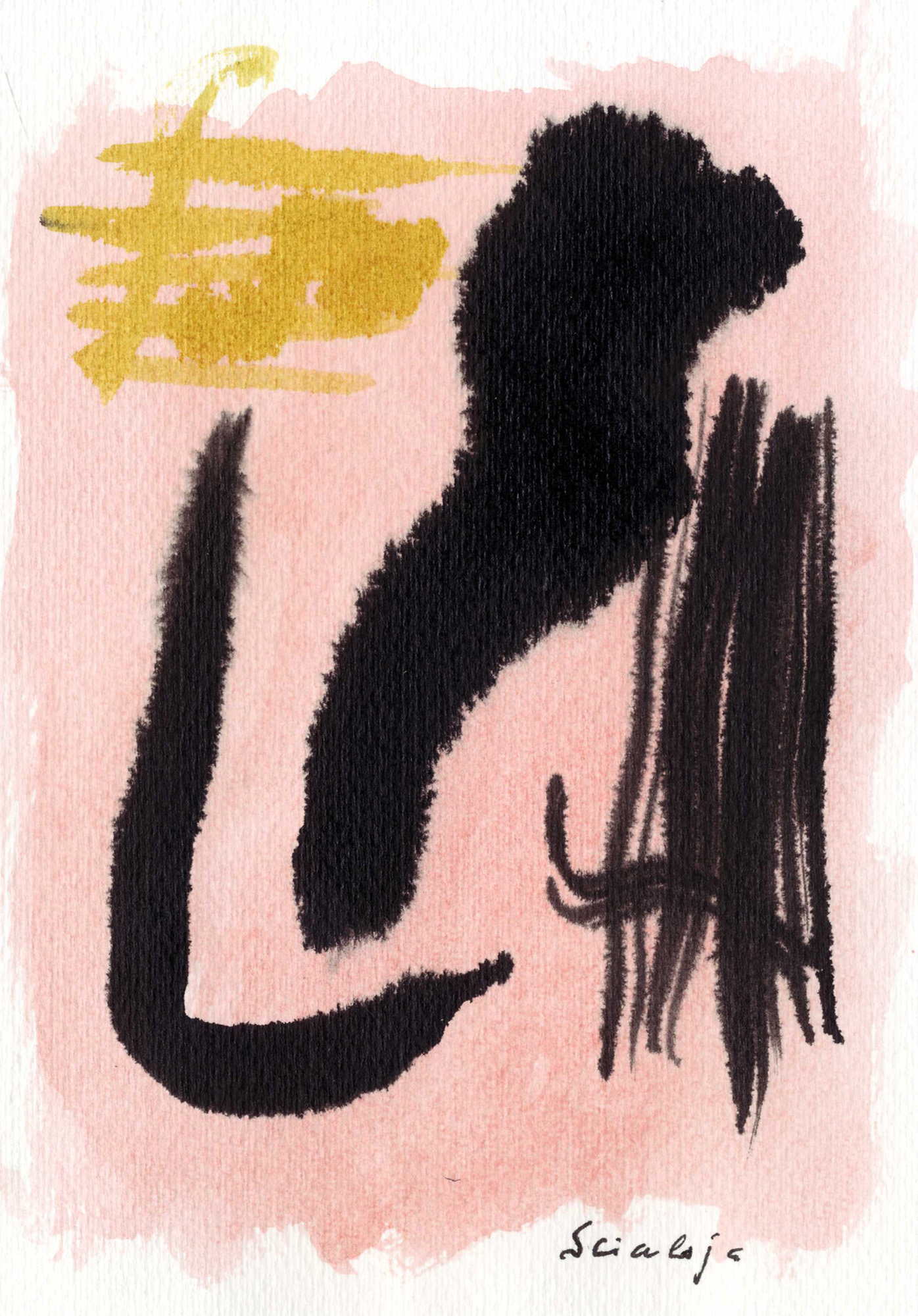 Toti Scialoja, Seria è la musica. 1990. Acquerello e olio su cartoncino. mm...