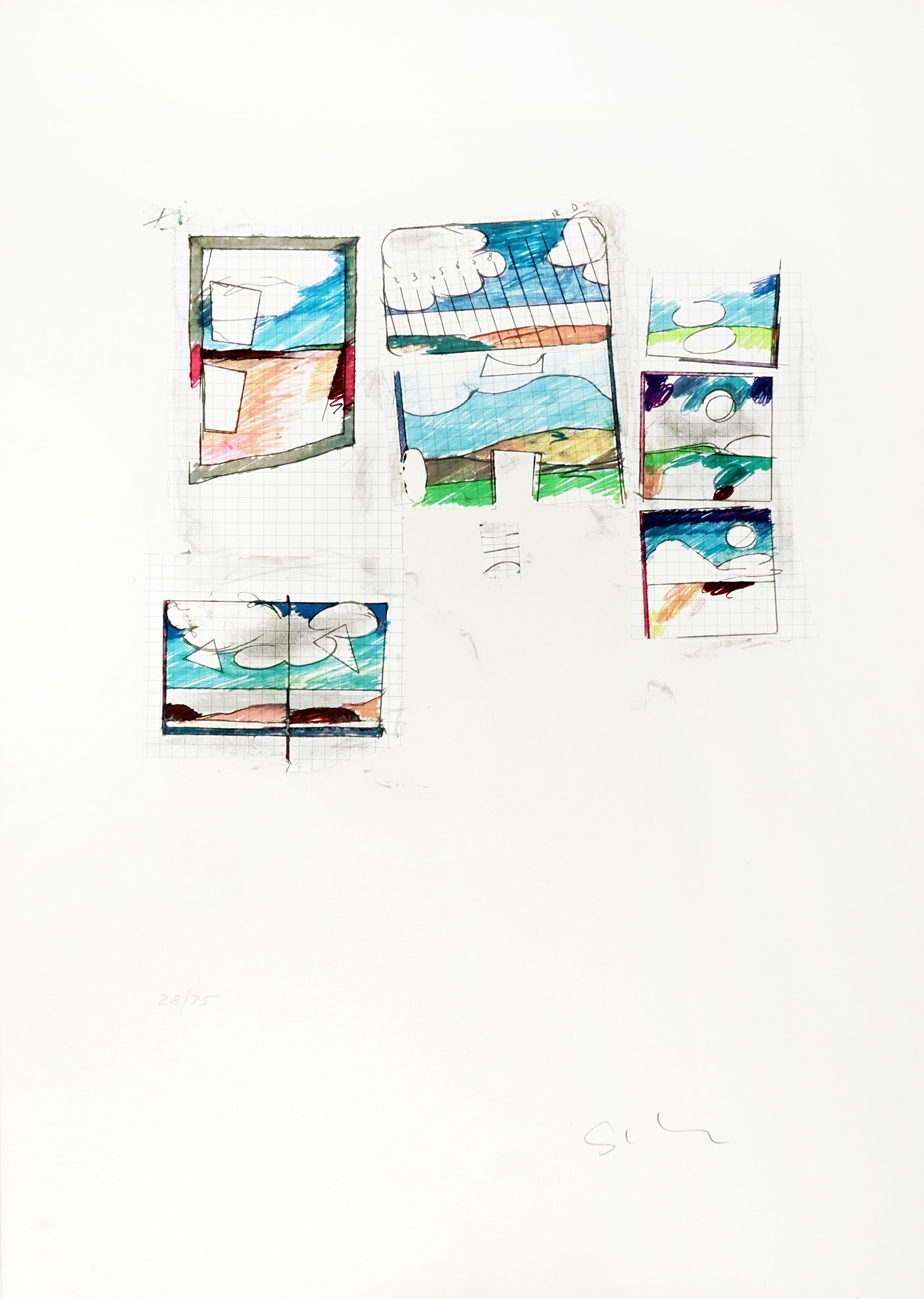 Litografia e collage su carta. mm 850x600. Firmata a matita in basso a destra e numerata in basso a sinistra. Es. 28/75. (1) Lievi tracce d'uso.