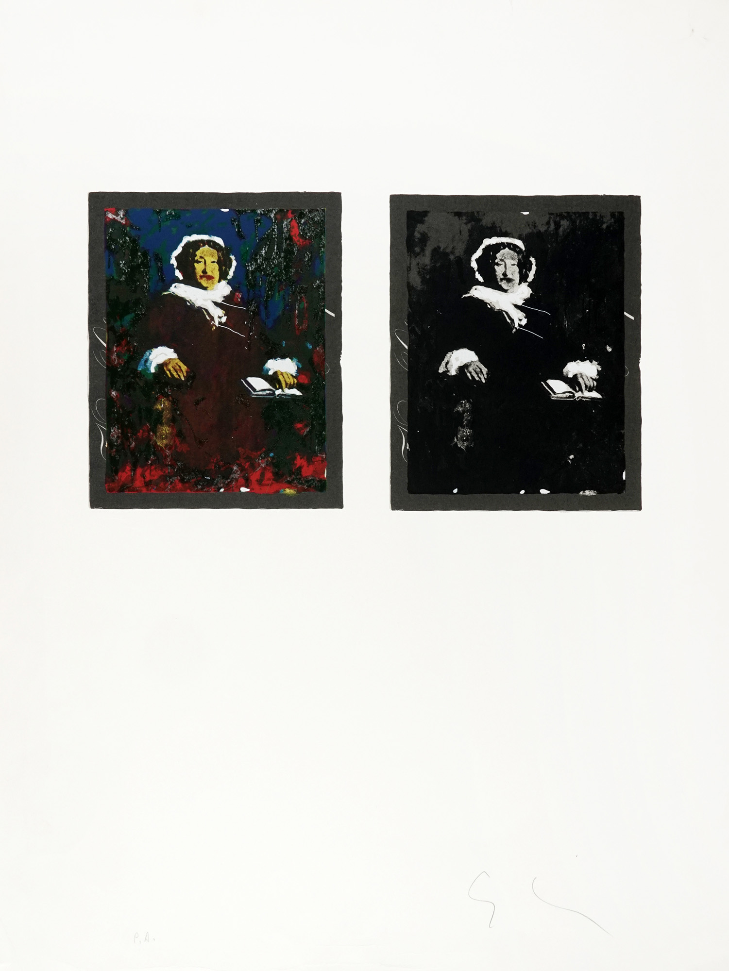 Litografia e poi serigrafia materica su carta. mm 255x440. Foglio: mm 800x600. Firma a matita in basso a destra e "P.A" in basso a sinistra. L'opera è accompagnata dalla polaroid dell'opera fatta dall'artista stesso. (1) Qualche sgualcitura della carta e uno strappetto al margine superiore. La polaroid ha il margine sinistro danneggiato.