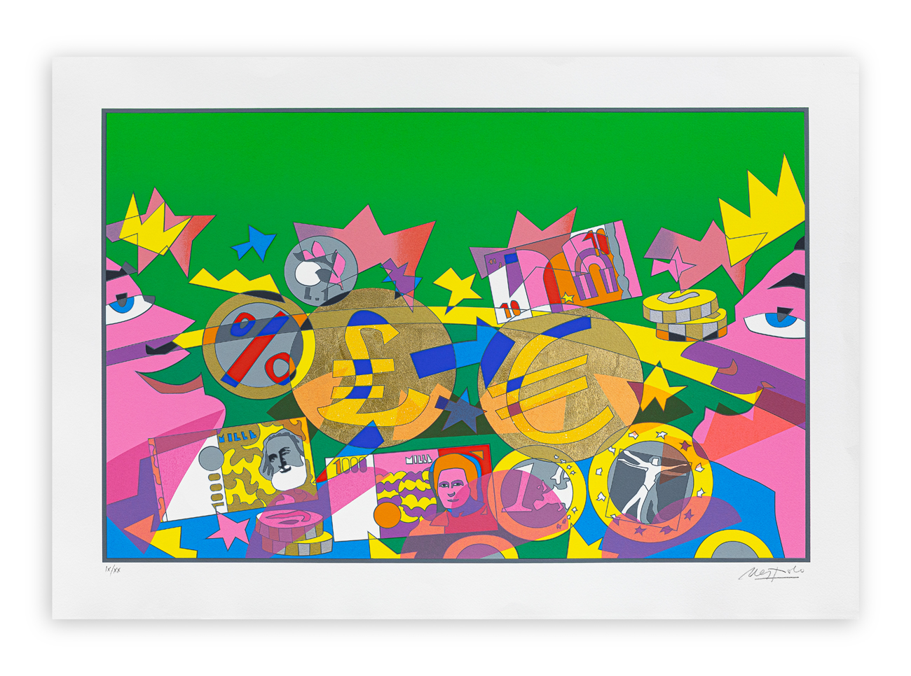 Serigrafia con interventi in carborundum , foglia oro e glitter