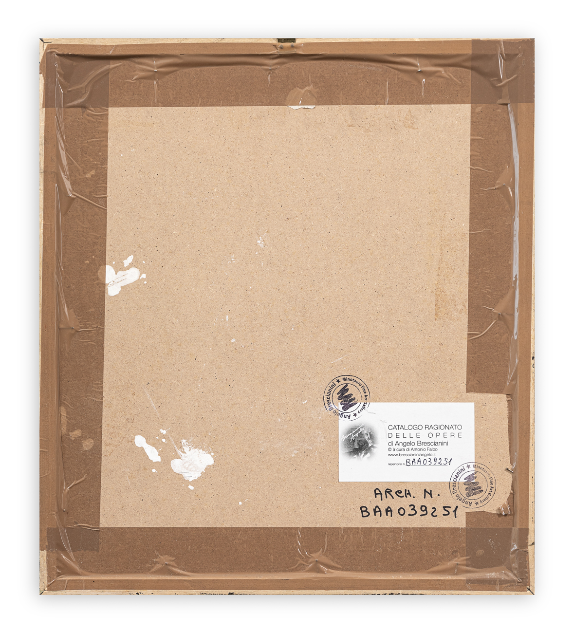 Etichetta del Catalogo Ragionato delle Opere di Angelo Brescianini al retro