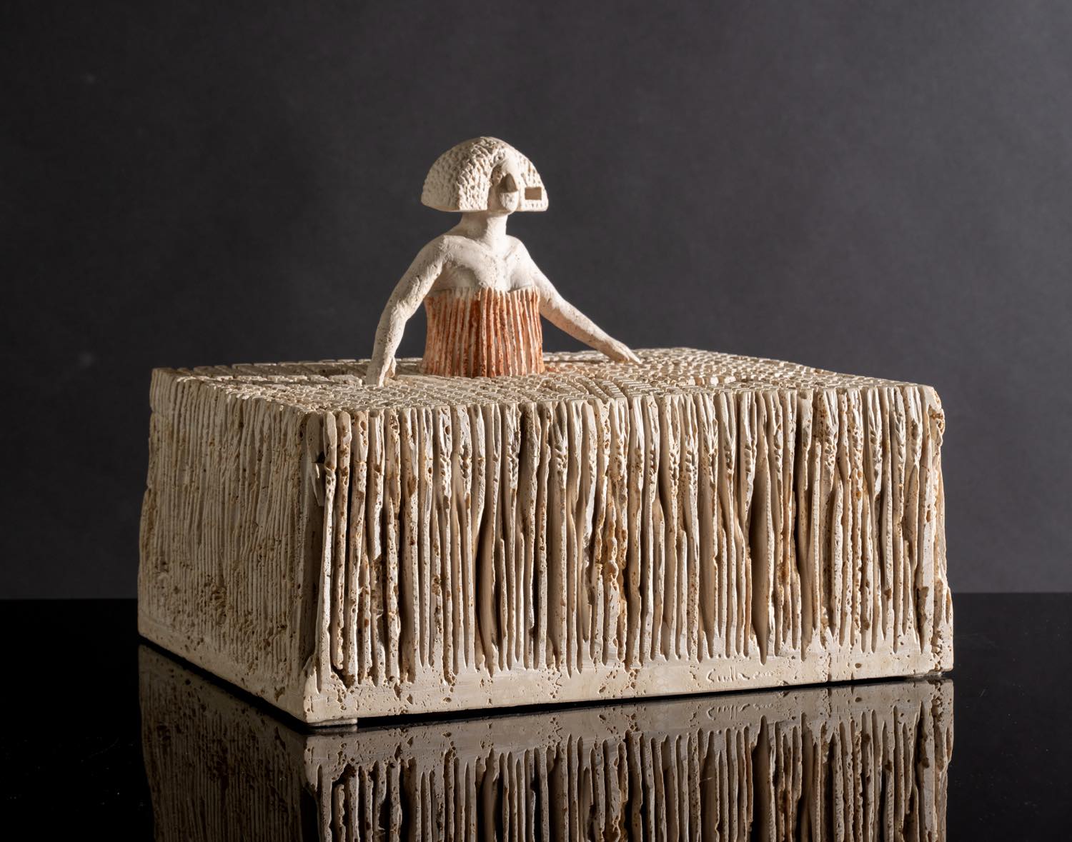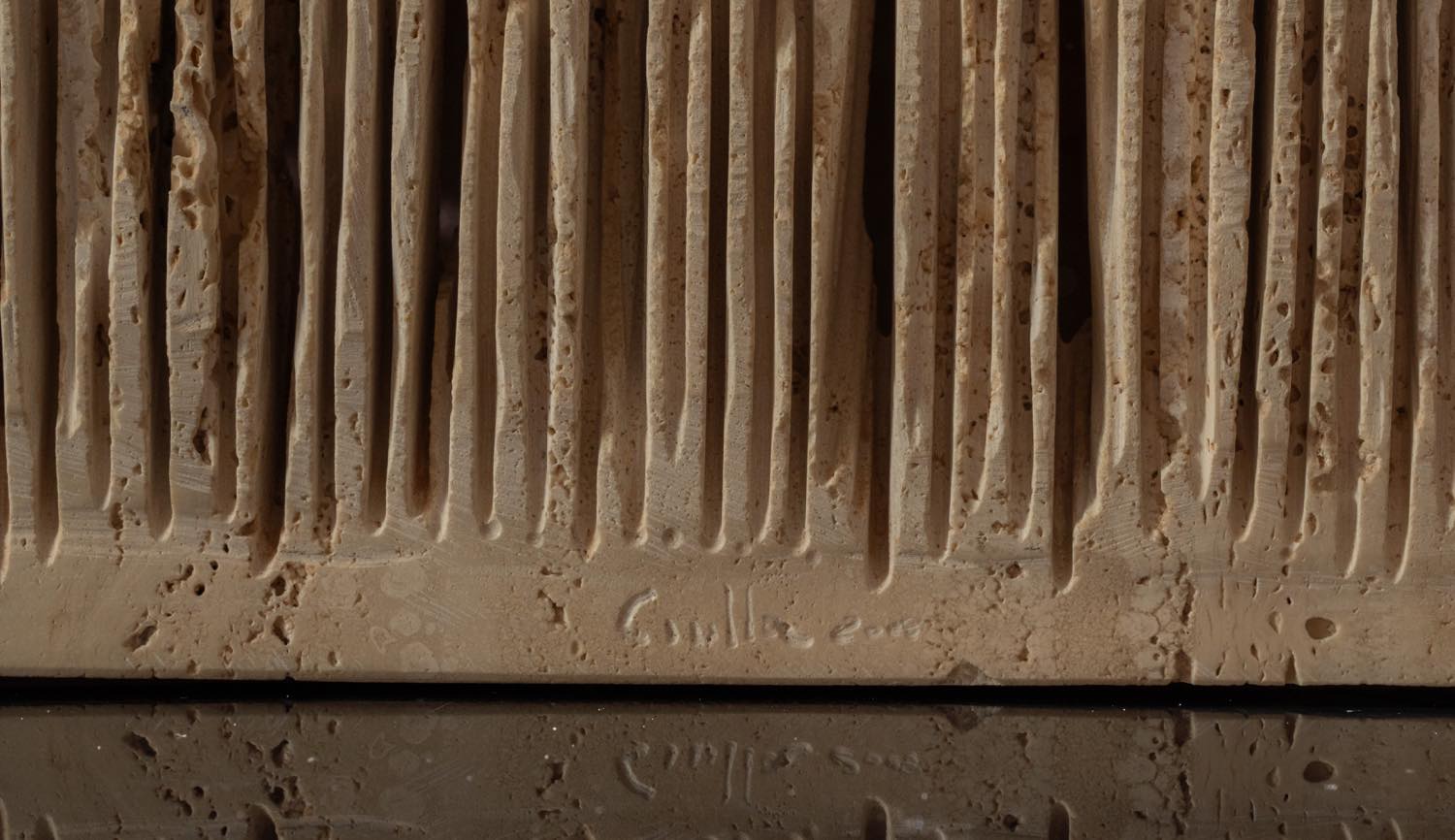Scultura in pietra travertino, reca alla base firma e data incise e sotto la base numerazione “436”, H cm 31x37x29 Provenienza: Importante Collezione Privata – Bologna.