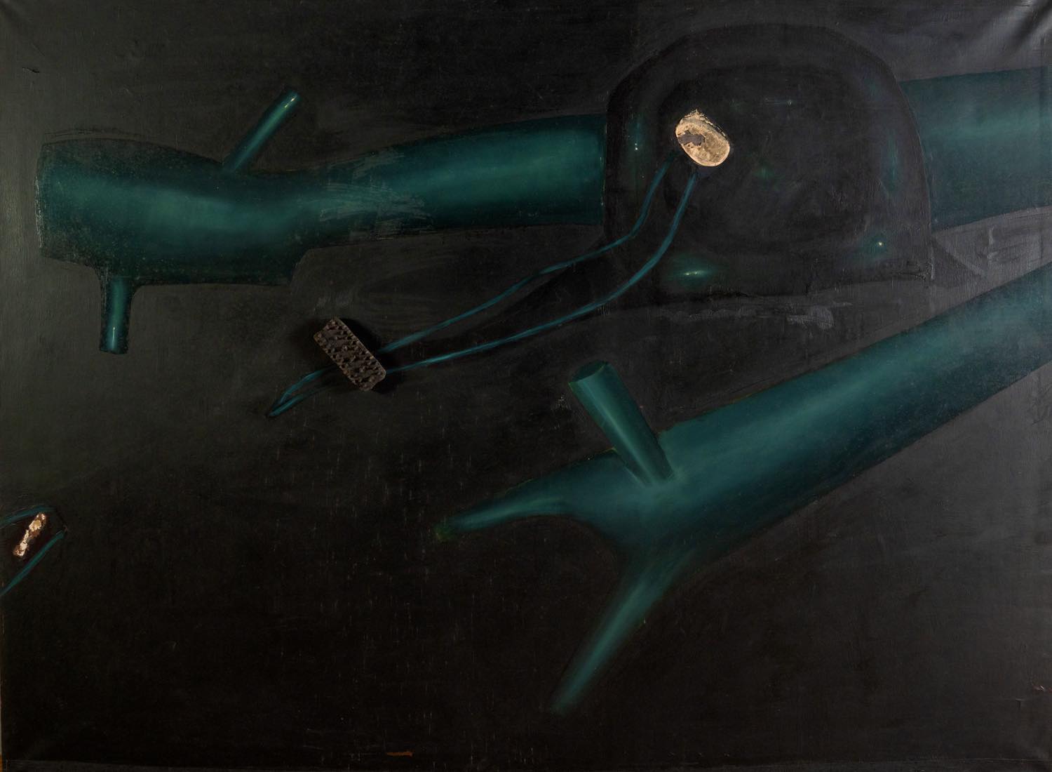 Olio e collage su tela, reca al retro iscrizione dell’artista per autentica, luogo, data, firma, dimensioni e titolo, H cm 150x200 (difetto) - Note: Provenienza: Importante Collezione Privata - Bologna.