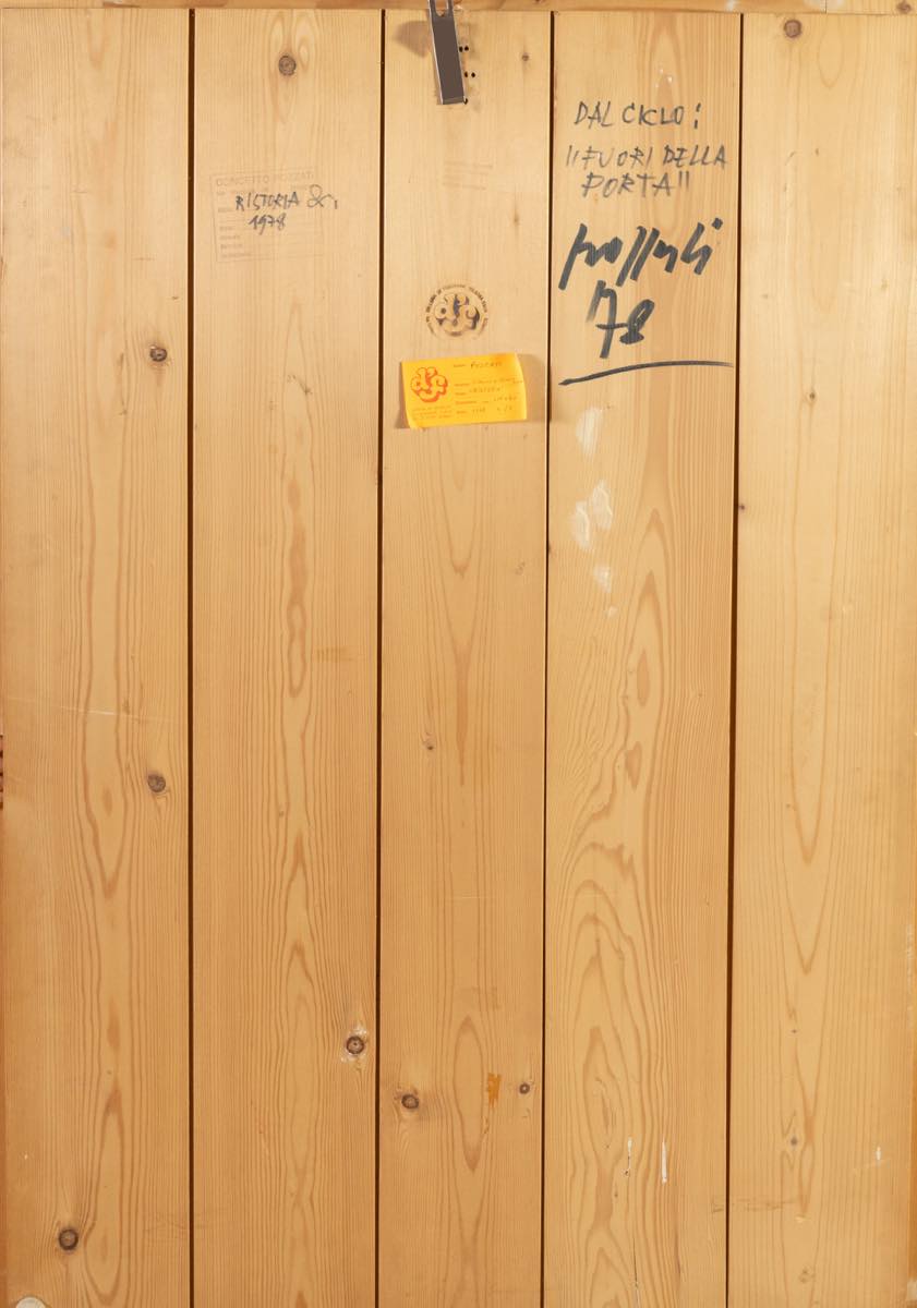 Vinilici e tecnica mista su legno, reca al retro timbro ed etichetta della Galleria De Foscherari – Bologna, due timbri dell’artista, titolo del ciclo, firma e data, H cm 115x80 - Note: Provenienza: Galleria De Foscherari – Bologna; Importante Collezione Privata – Bologna.