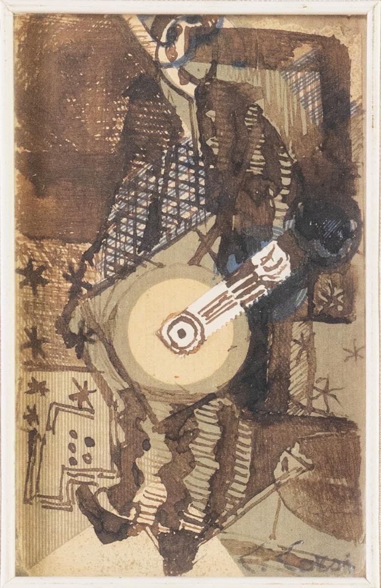 Tecnica mista acquerello su carta, firmato in basso a destra, reca al retro iscrizione per autentica dell’artista e iscrizione per autentica a cura di Luciano Bartolotti, H cm 14x9 - con cornice H cm 35x29 - Note: Provenienza: Importante Collezione Privata – Bologna.