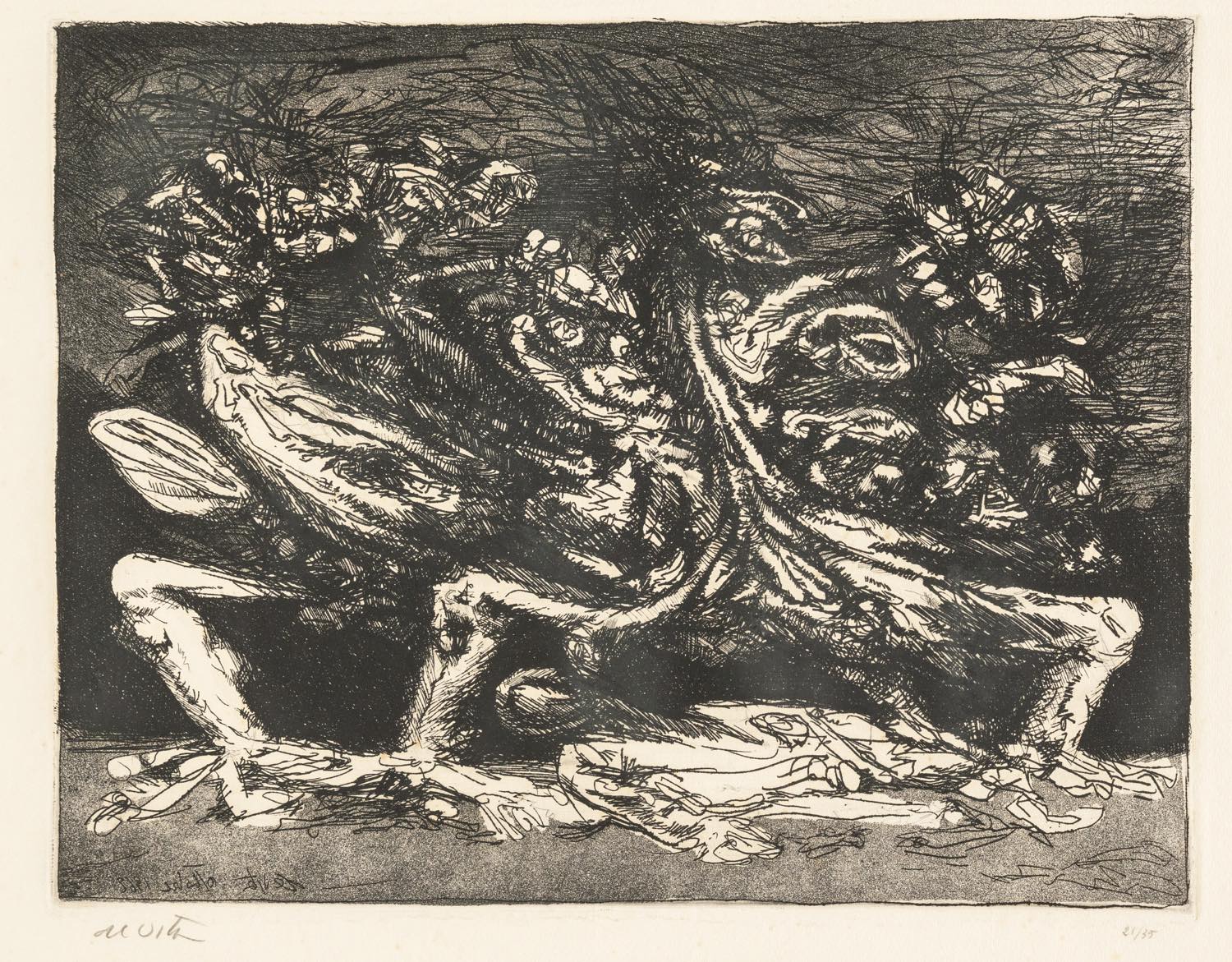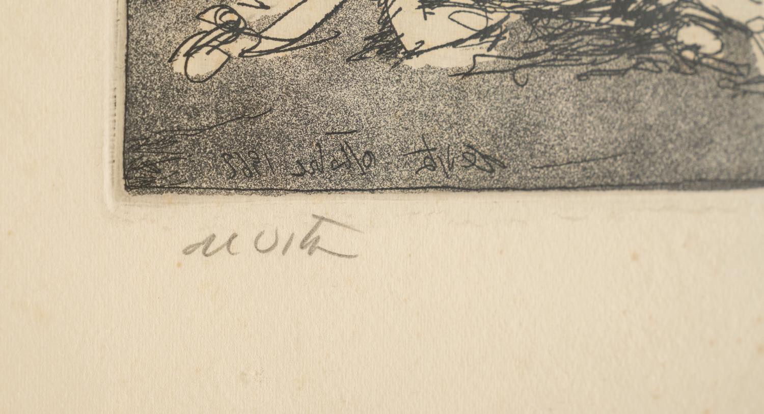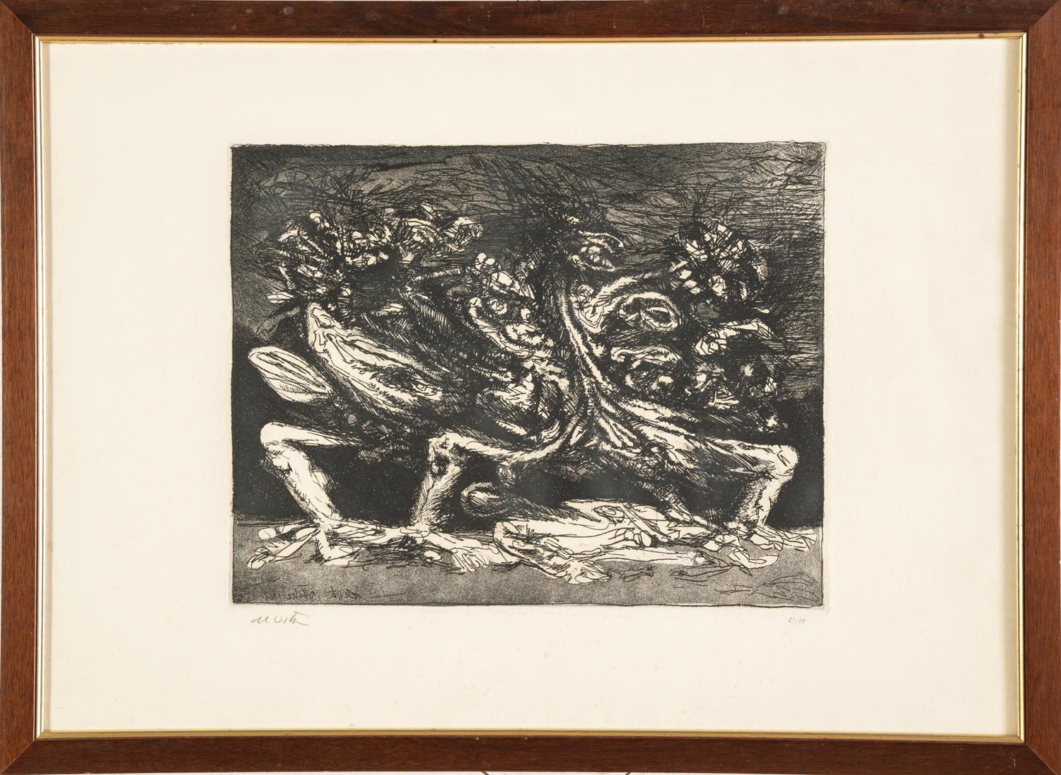 Acquaforte su carta, firmata in basso a sinistra, numero di tiratura in basso a destra 21/35, presenta sulla lastra in basso a sinistra iscrizione e data, Lastra H cm 34x43 – con cornice H cm 55x76 - Note: Provenienza: Collezione Antonacci – Bologna.