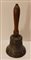 Bottega emiliana. Campanello d'altare in bronzo, XIX-XX secolo. Cesellata su tutta la superficie esterna. Impugnatura in legno. Lievi usure sul bordo inferiore. Peso gr. 1250. Altezza cm. 26, Diametro cm. 12.