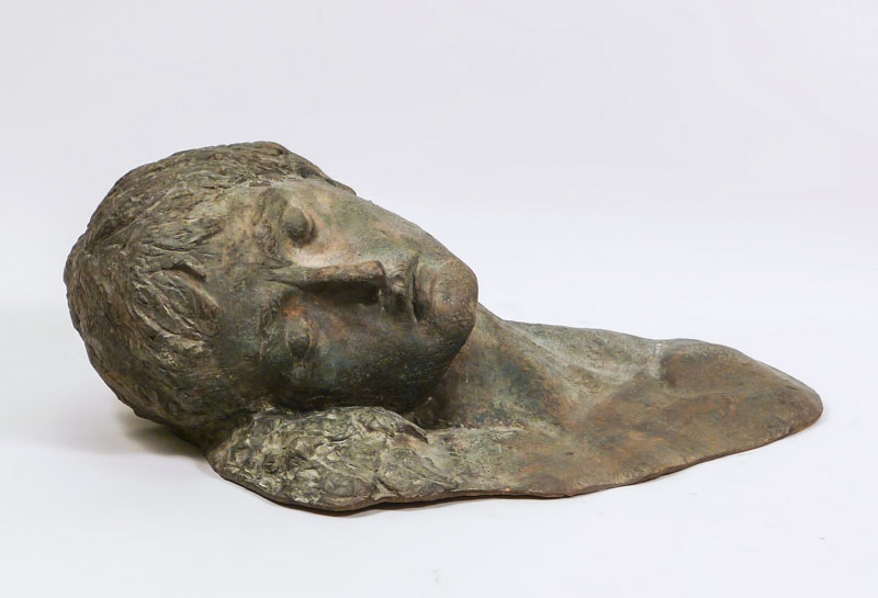 GRUPPO IN TERRACOTTA PATINATA - PATINATED TERRACOTTA FIGURAL GROUP raffigurante un busto di giovane dormiente, lievi difetti cm 18x49