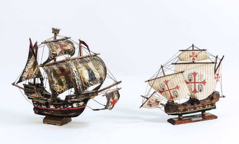 DUE MODELLI DELLA CARAVELLA SANTA MARIA - TWO MODELS OF THE ST. MARY CARAVEL...