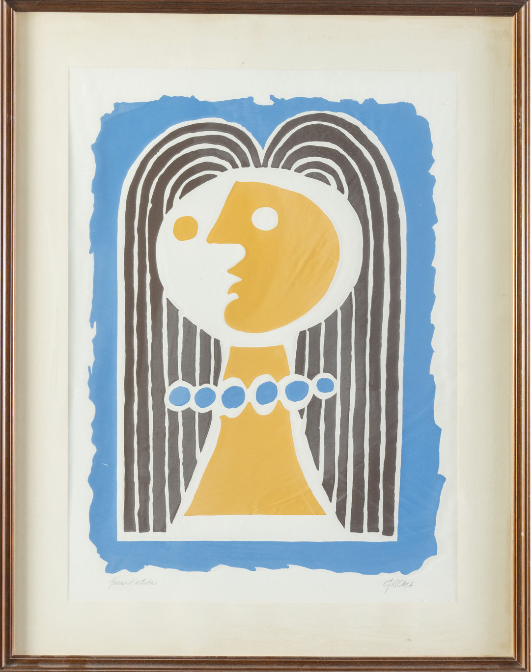 Léon Gischia (Dax 1903 - Parigi 1991). Le collier bleu. Litografia a colori su carta. Prova d'artista. Firmata a matita in basso a destra. Entro cornice. Cm. 63x45,5.