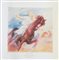 Aligi Sassu (Milano 1912 - Pollença 2000). Figura a cavallo. Multiplo a colori su carta. Esemplare n. 5/99, con dedica e firma dell'autore in basso al centro. Matrice cm. 51x51. Foglio cm. 67,5x68.
