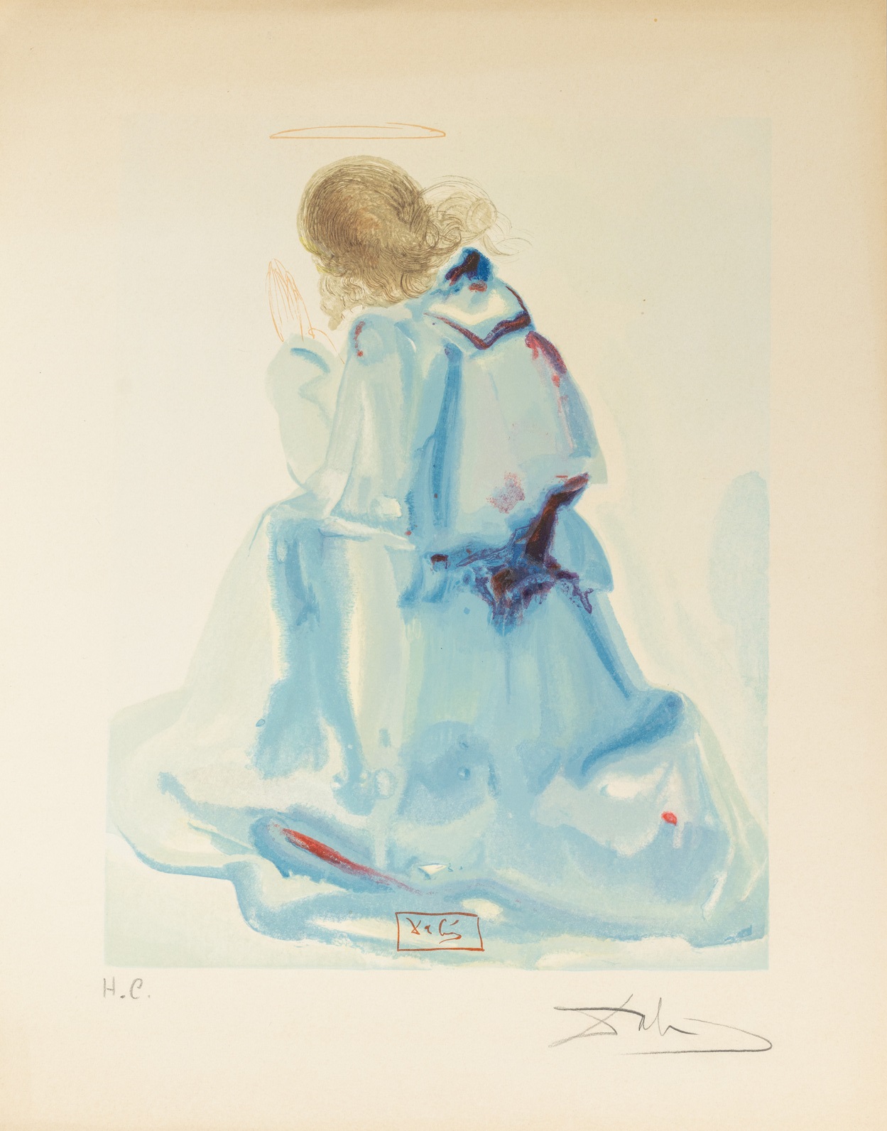 Salvador Dalì (Figueres 1904 - 1989). L'angelo del primo cielo. Litografia a colori su carta. Esemplare H.C. Firmato e numerato a matita al margine inferiore. Lievi difetti. Cm. 33x26,5.