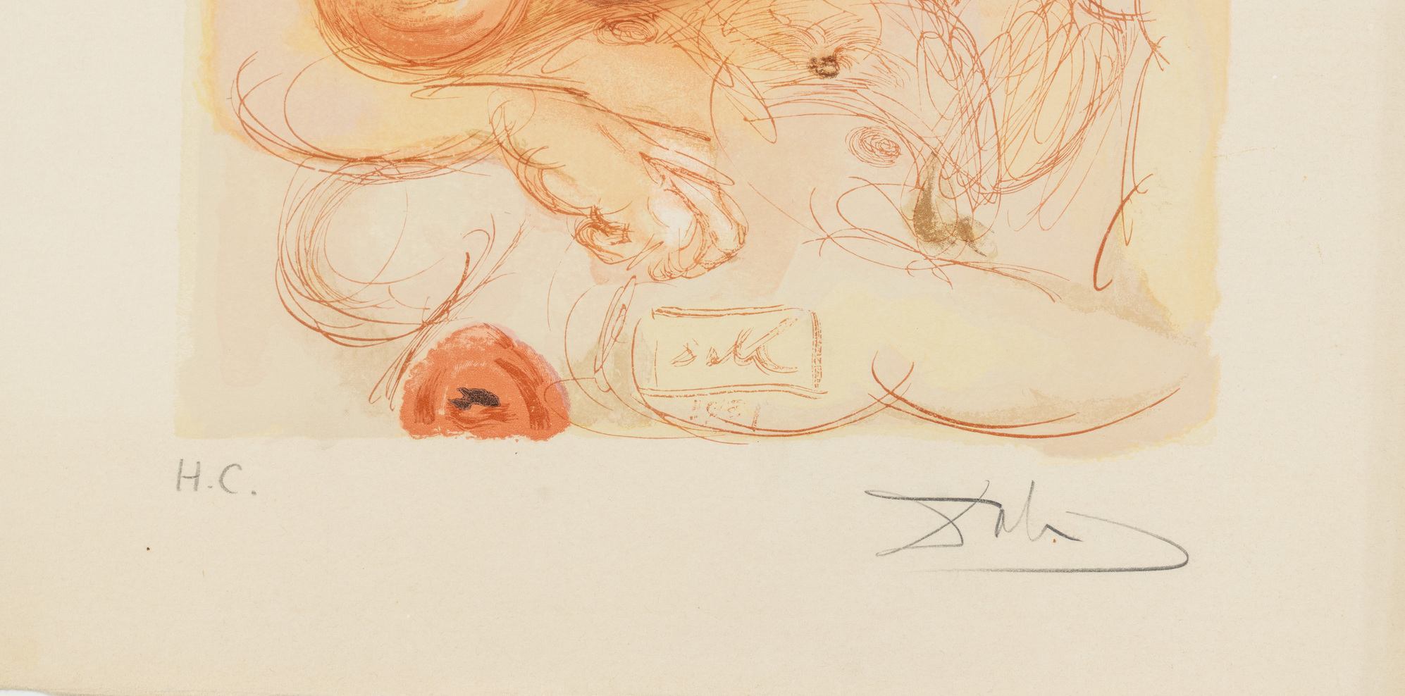 Salvador Dalì (Figueres 1904 - 1989). L'aquila della grazia. Litografia a colori su carta. Esemplare H.C. Firmato e numerato a matita al margine inferiore. Lievi difetti. Cm. 33x26,5.