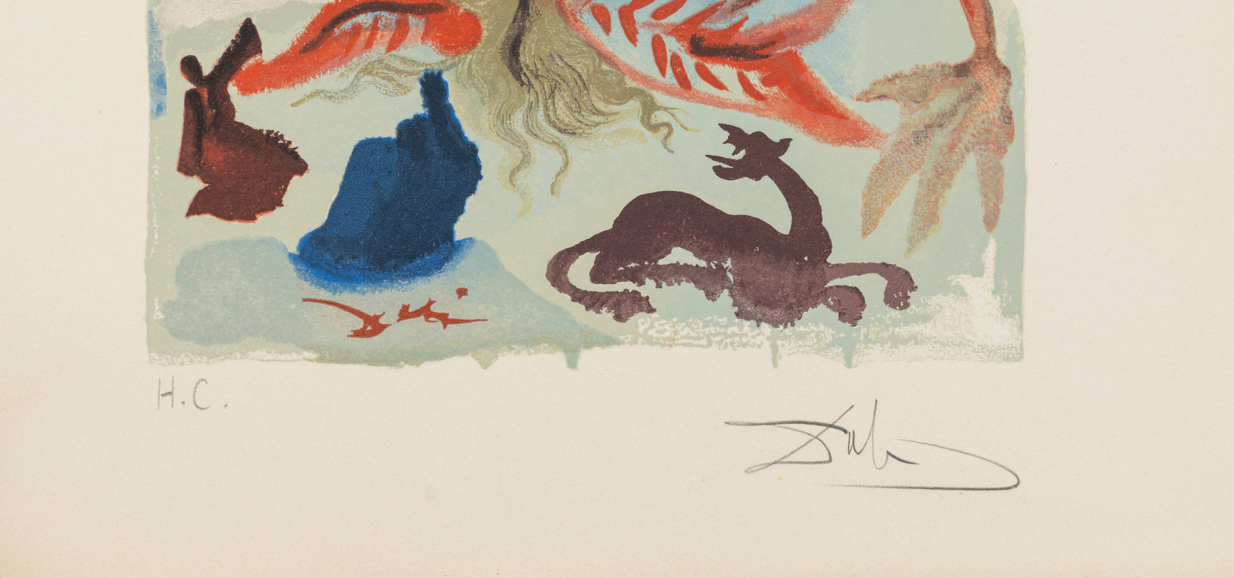 Salvador Dalì (Figueres, 1904 - 1989). La golosità. Litografia a colori su carta. Esemplare H.C. Firmato e numerato a matita al margine inferiore. Lievi difetti. Cm. 33x26,5.
