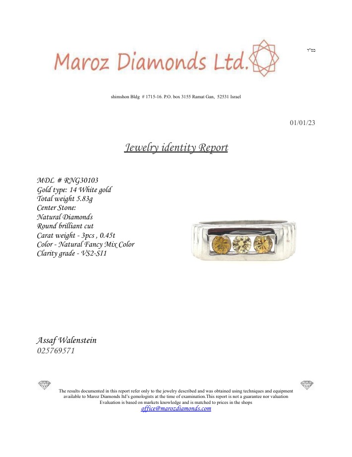 ANELLO IN ORO BIANCO 14K 5.83 GR CON DIAMANTI PER 0.45 CARATI MIX FANCY COLOR SI1-2 TAGLIA-9 - CERTIFICATO GEMMOLOGICO MAROZ DIAMONDS LTD MEMBRO ISRAEL DIAMOND EXCHANGE - RNG30103