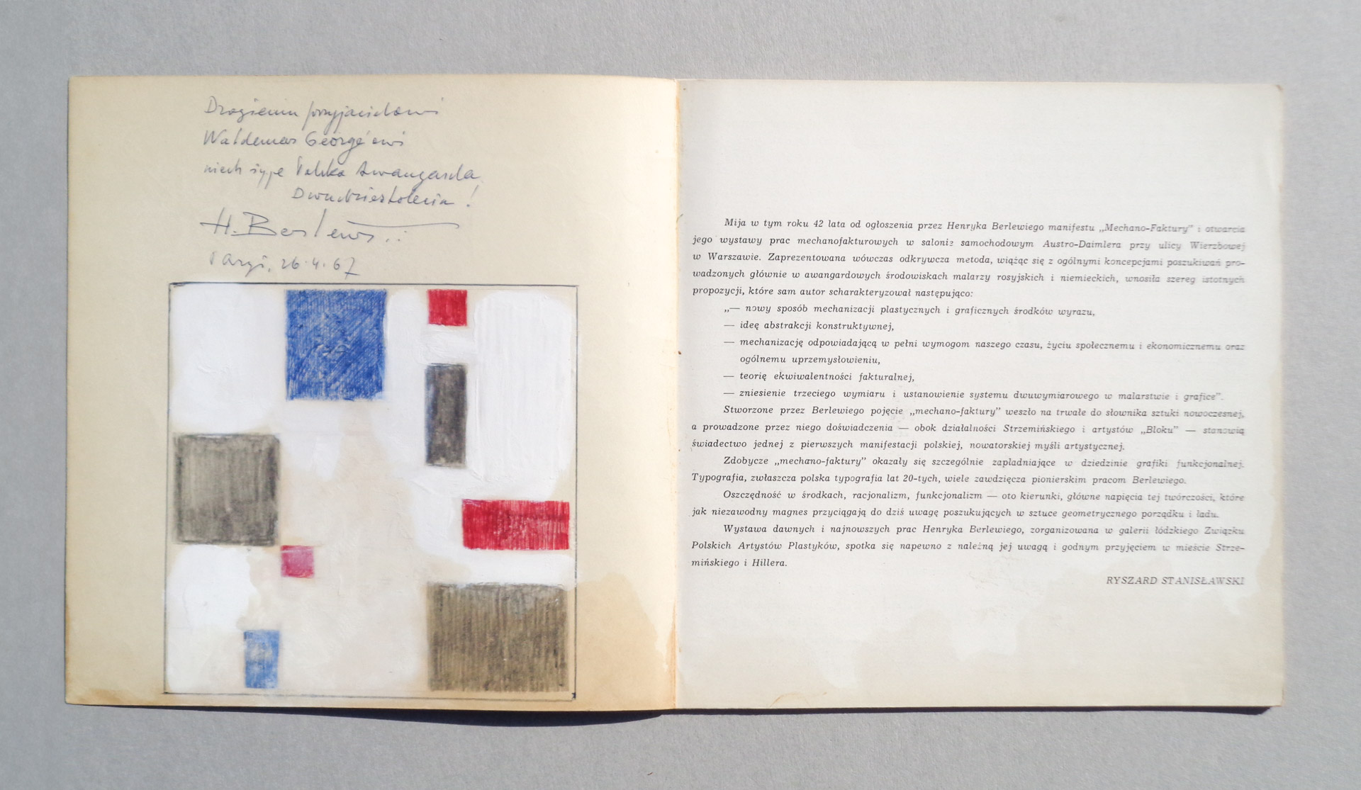 Henryk Berlewy (Warschau/Varsavia 1894 - Paris/Parigi 1967) Senza titolo, 1967;Tempera realizzata sul risvolto di copertina del catalogo H. Berlewy 1966,