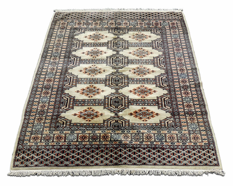 TAPPETO BUKARA KASHMIR - BUKARA KASHMIR RUG fondo beige, campo con motivi...