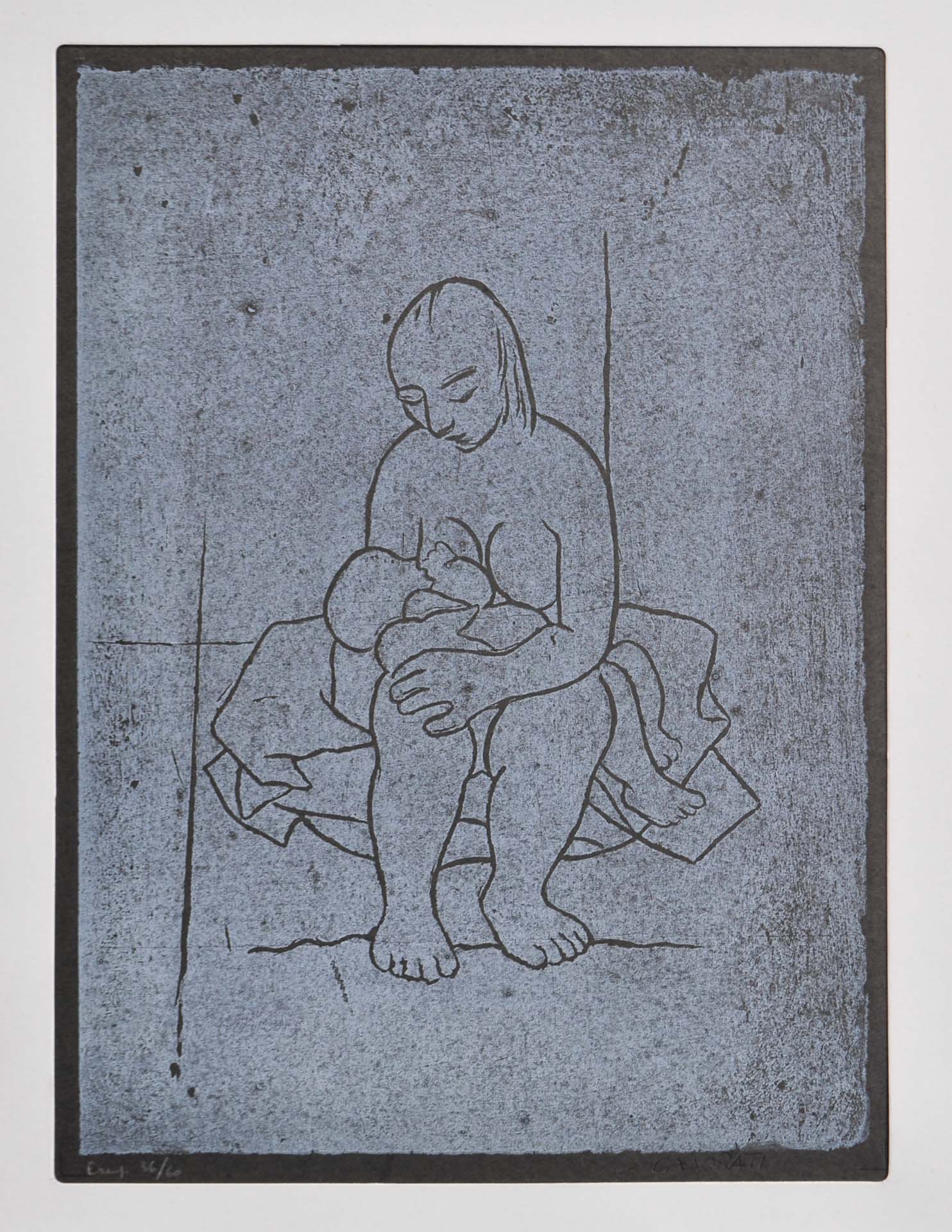 Felice Casorati (1883 - 1963) Maternità, 1962;Acquatinta su carta entro passapartout, ca.