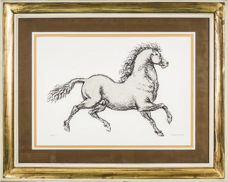 FRANCESCO MESSINA (1900-1995) Cavallo - Horse litografia - lithograph, prova d'autore, firmata, in cornice cm 48x68