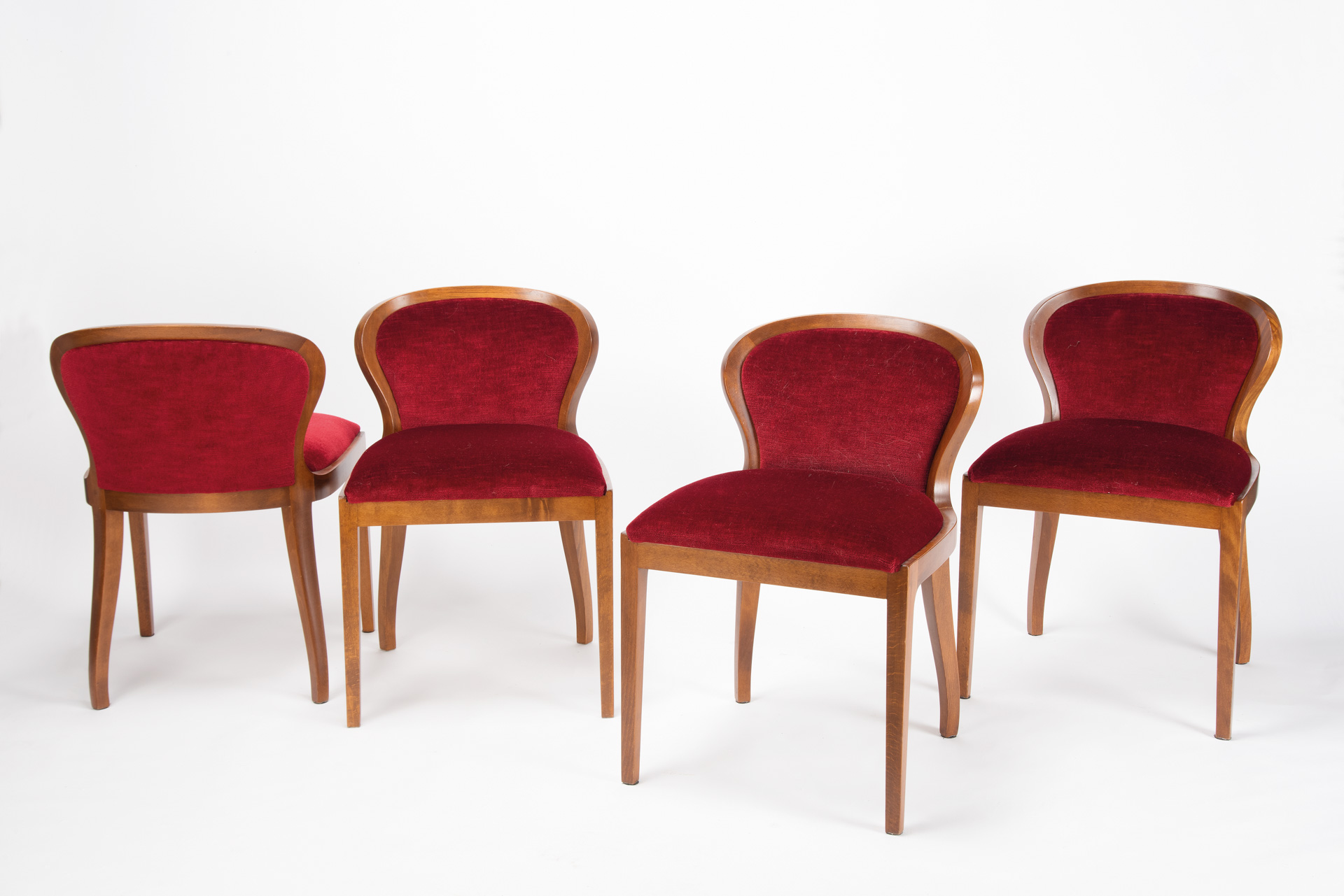 Lorenzo Forges Davanzati 4 sedie Modello Stradivarius;Sedia in noce con sedile e schienale imbottiti,