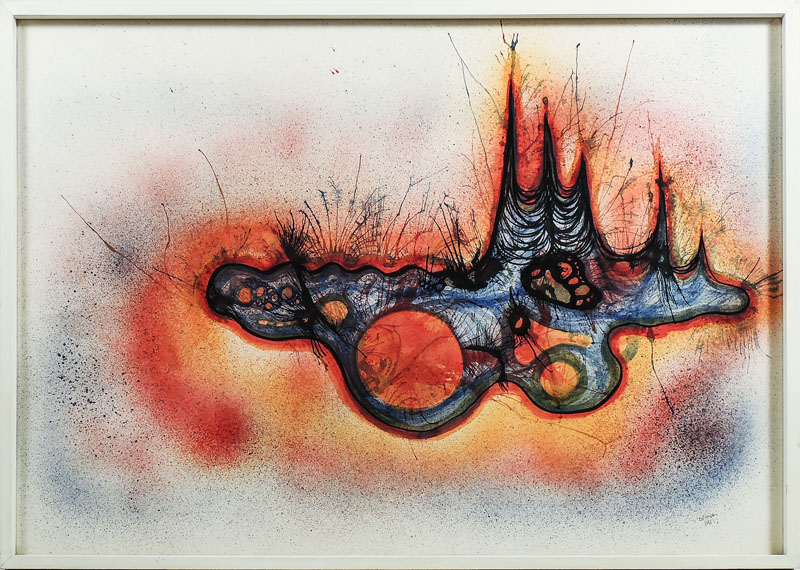 FABIO DE POLI SENZA TITOLO - UNTITLED tecnica mista su carta - mixed media on paper, firmato e datato 1965, in cornice cm 69x97