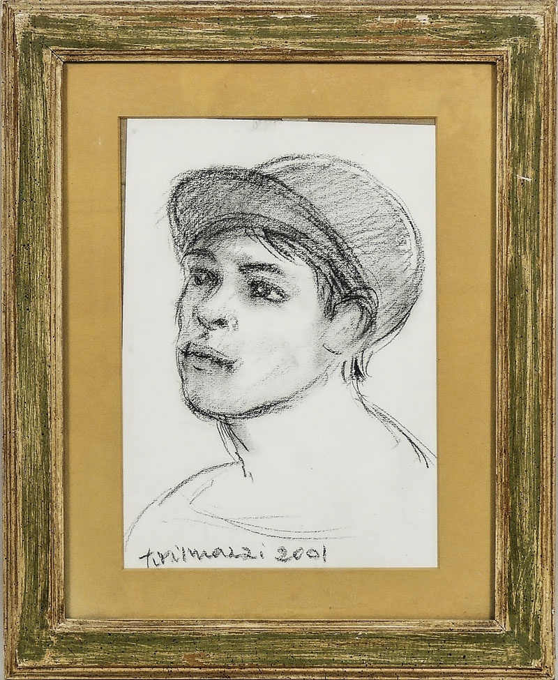 NINO TIRINNANZI (1923-2002) Ritratto di giovinetto 2001 - Portrait of a Boy carboncino su carta - charcoal on paper, firmato e datato 2001, in cornice cm 33x23