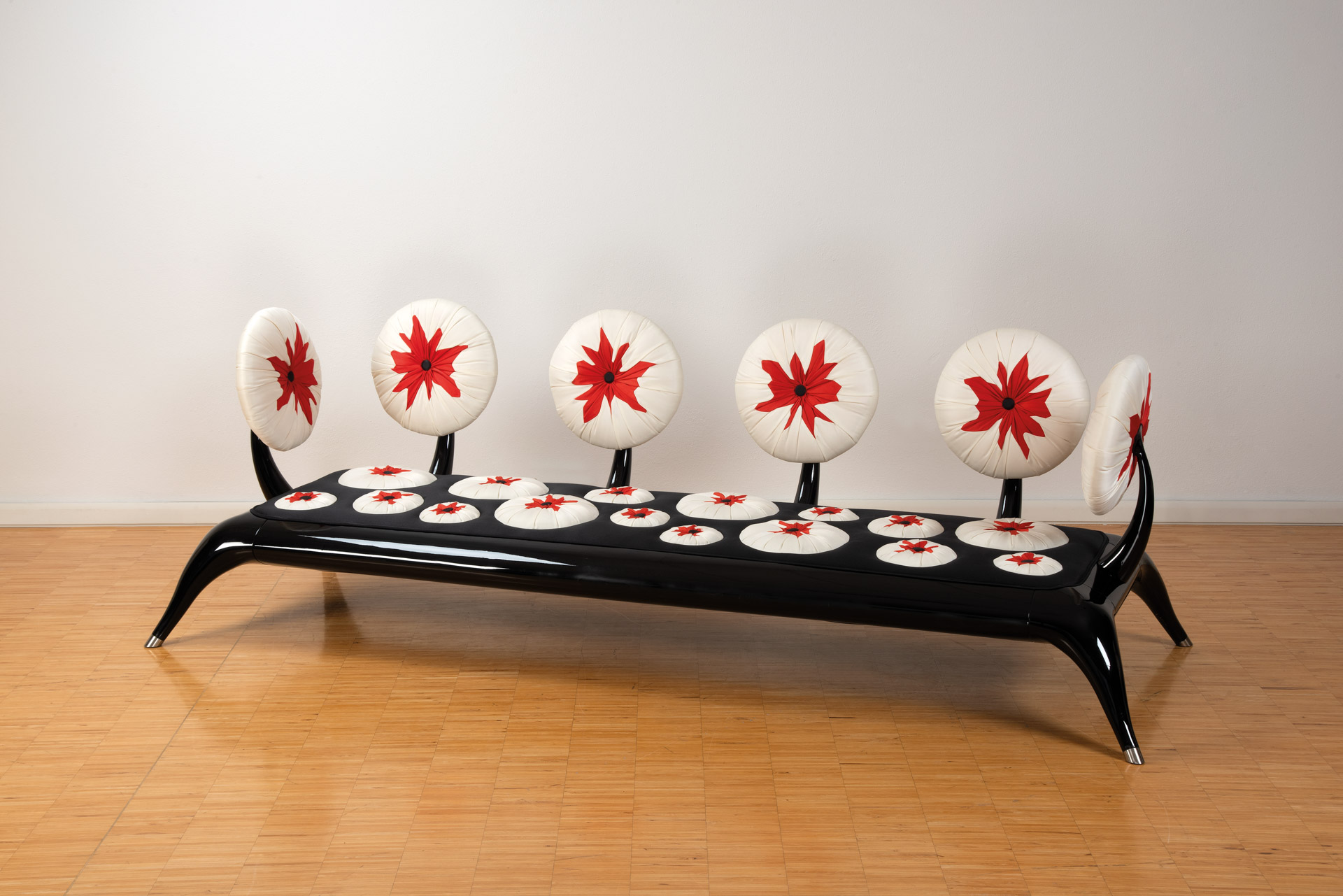 Andrea De Benedetto Divano modello "Ricci di mare";Struttura in legno verniciato e laccato nero, tessuto Fadini Borghi