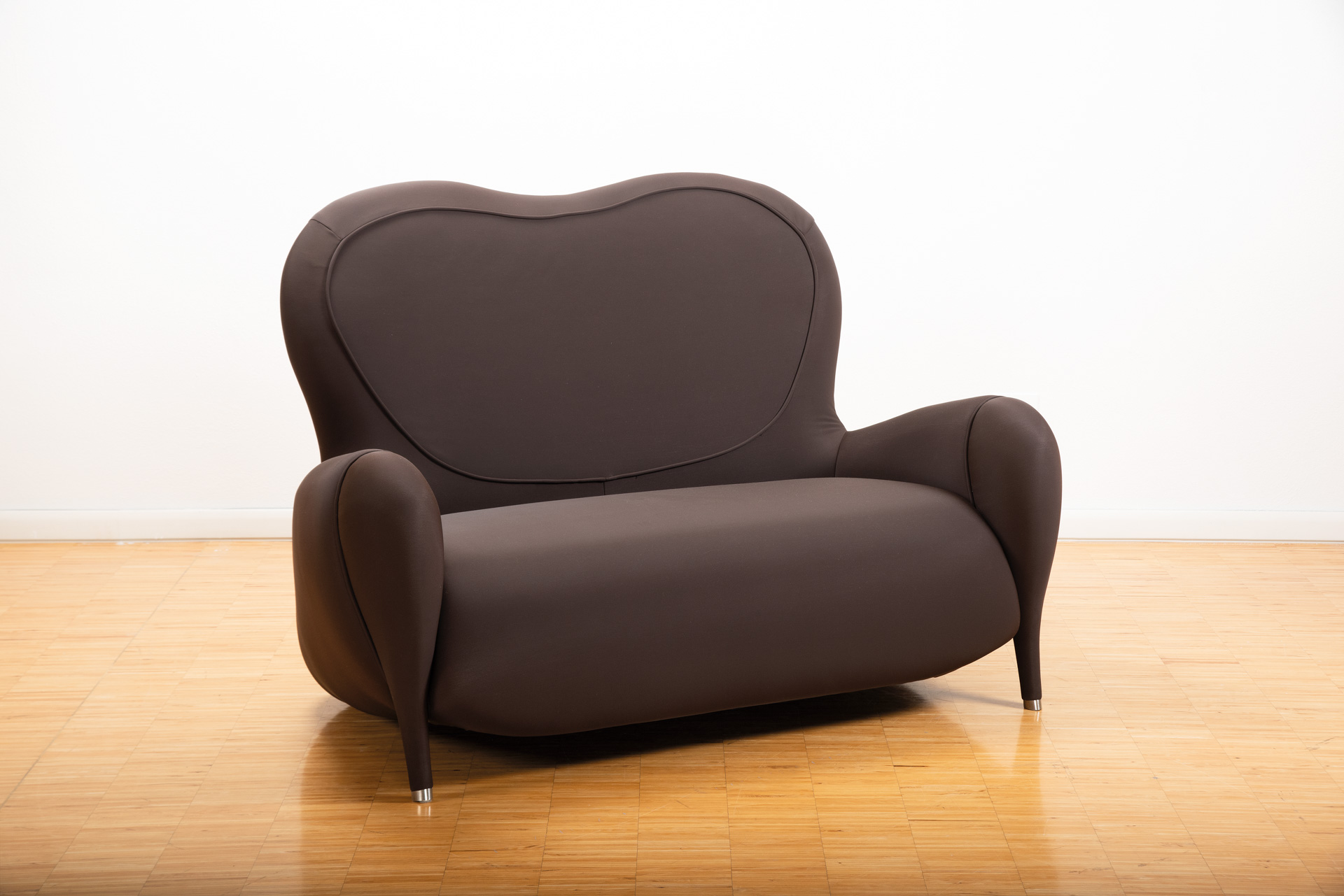 Andre De Benedetto Divano modello "Maitresse";Struttura in legno color marrone, tessuto Emmecia cat.A, h. 102 x 154 x 97 cm, prototipo per DESART Bolzano