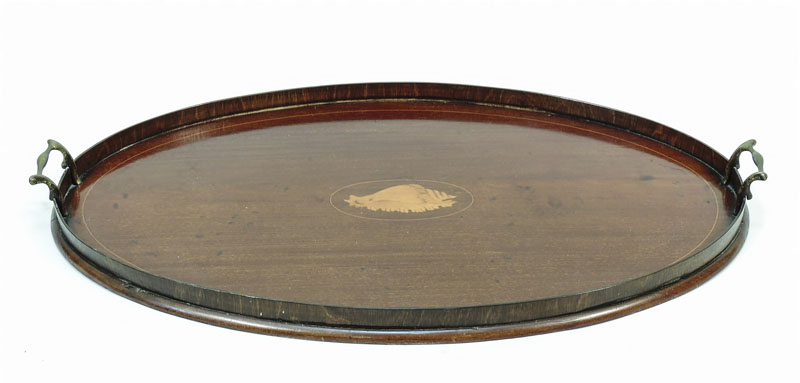 14. VASSOIO OVALE IN SATINWOOD - OVAL SATINWOOD TRAY intarsiato con conchiglia