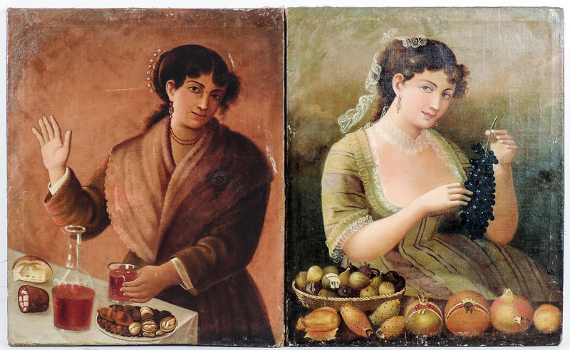 RITRATTI FEMMINILI - FEMALE PORTRAITS Scuola napoletana del XIX secolo - Neapolitan School of 19th Century coppia di dipinti ad olio su tela - a pair of oils on canvas, difetti cm 76x62