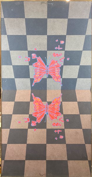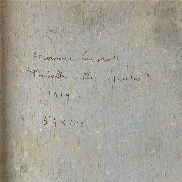 Francesco Casorati "Farfalle nello spazio" 1979 tempera su compensato cm 103x53,