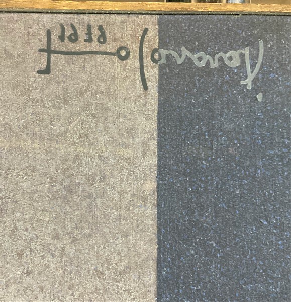 firmata e datata in alto e in basso; firmata, titolata e datata al retro. In cornice (difetti)
