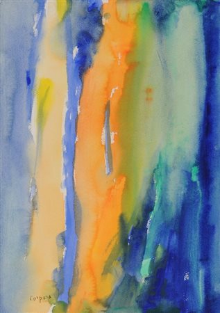 Antonio Corpora (Tunisi 1909 - 2004) VIAGGIO IN ORIENTE, 2000 Acquerello su carta, cm. 51x36 Firmato in basso a sinistra. Sul verso: firma e titolo. Autentica dell'Artista su foto con etichetta "Giovanni di Summa Arte Moderna e Contemporanea", Roma.