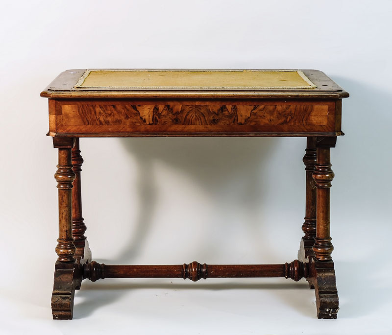 TAVOLINO DA LAVORO IMPIALLACCIATO IN NOCE E PIUMA DI NOCE - WALNUT AND WALNUT...
