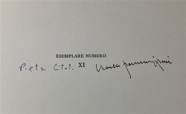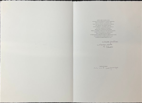 Christian Stein Edizioni, Milano, 2009. Dedica di Parmiggiani a Claudia Gian Ferrari sul colophon