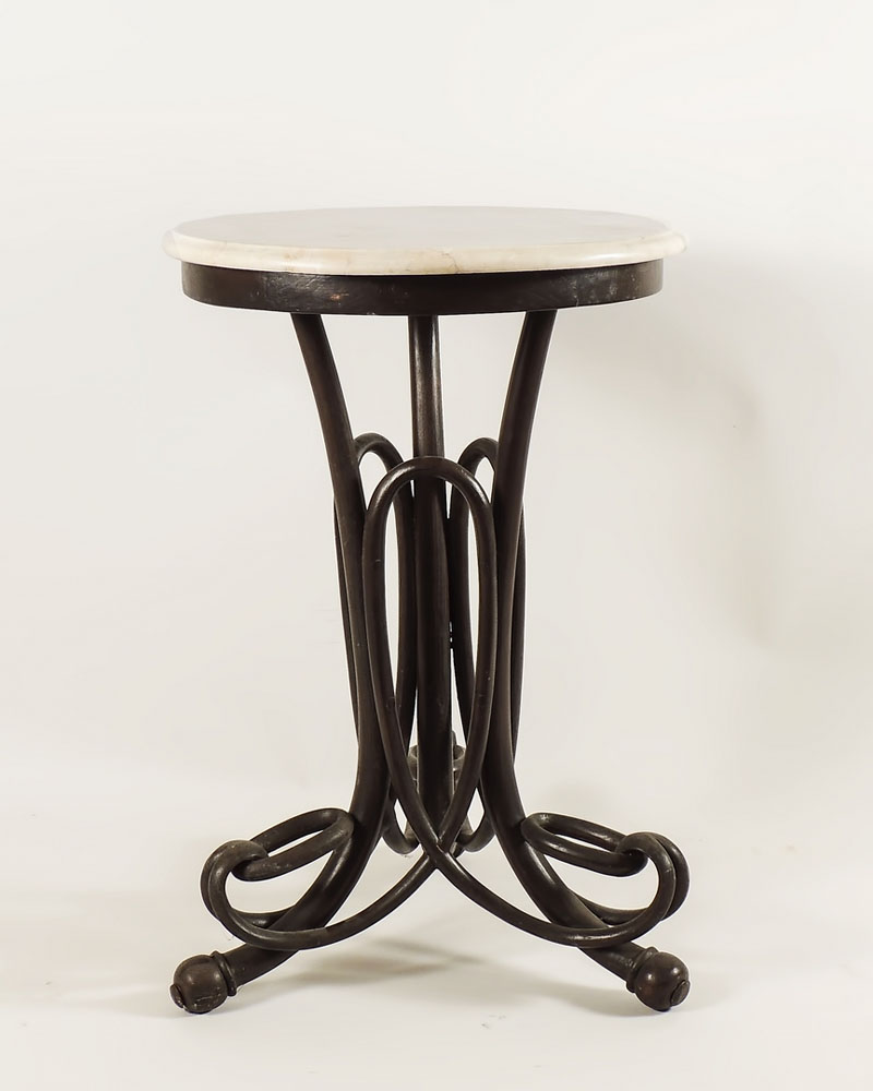 TAVOLINO TONDO IN FAGGIO CURVATO STILE THONET - BEECHWOOD ROUND TABLE THONET STYLE piano in marmo bianco h cm 74, diam cm 50