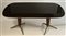 Tavolo da pranzo con piano in vetro retroverniciato color melanzana (cm 192x79x97). Anni '50. Struttura in mogano massello e due gambe troncoconiche con base a tripode in fusione di bronzo.