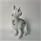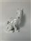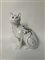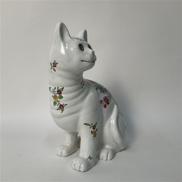 Scultura raffigurante gatto in ceramica bianca con decori policromi, occhi in p
