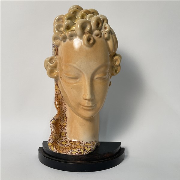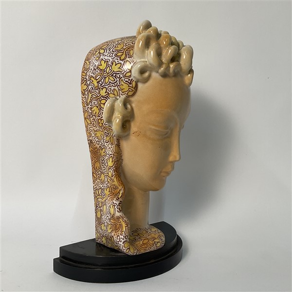 Minghetti Scultura raffigurante volto di donna in ceramica smaltata nei toni del
