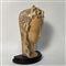 Scultura raffigurante volto di donna in ceramica smaltata nei toni del beige, su base lignea. (h max cm 38) (lievi difetti)