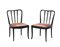Coppia di sedie da camera in legno massello ebanizzato, seduta imbottita e rive
